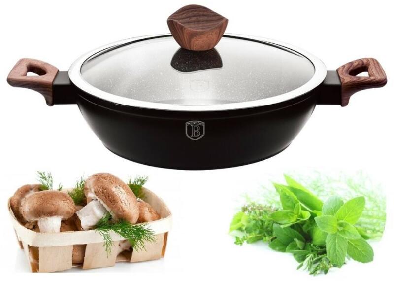 Berlinger Haus Forest Line serpenyõ kõ hatású márvány bevonattal, fa mintázatú nyéllel, 28 cm