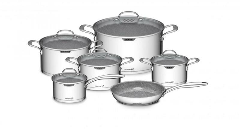 G21 Gourmet Miracle edénykészlet különleges 18/10 CrNis élelmiszeripari rozsdamentes acélból GREBLON® C3+ belső tapadásmentes felülettel magas ellenállással. Minden edény és serpenyő erős szendvics aljjal rendelkezik a tökéletes egyenletes hőelosztásért és megfelelnek minden típusú tűzhelyre. Az egyedi tulajdonságaiknak és a tökéletes kialakításuknak köszönhetően
