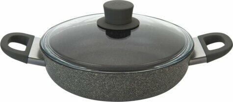 A Royality Line alacsony lábas fedővel, melynek cikkszáma RL-BR32ML, kiváló választás minden háztartásba, ahol fontos a minőség és a funkcionalitás. Ez a lábas 5,5 liter űrtartalommal rendelkezik, ami ideális mennyiség különböző ételek elkészítéséhez. A 32 cm átmérőjű lábas elegáns fekete színben kapható, amely minden konyhai környezetbe tökéletesen illeszkedik