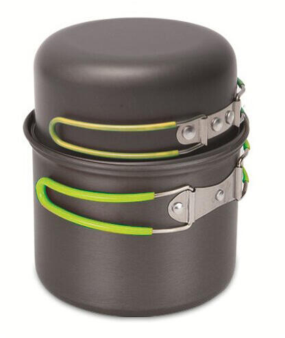 Mély fedeles edény eloxált felületű alumíniumból. Az összecsukható fogantyúk acélhuzalból készültek, szilikon hőálló csővel. Az eloxálás (más néven Eloxálás) egy nagyon erős és kemény alumínium-oxid réteget hoz létre az anyag felületén, amely megakadályozza a további oxidációt, növeli az anyag