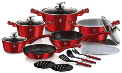 Berlinger Haus Metallic Burgundy Line 15+3 részes edénykészlet márvány bevonattal, metál külsõ bevonattal