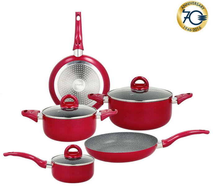 Tulajdonságok: Kiszerelés: 8 darab Fő anyag : Alumínium Fenék vastagsága mm. : 3,00 Fogantyúk anyaga : Bakelit A csomag tartalma: 1 lábas 1 fogantyúval Méret/mélység/átmérő cm : 16,00 Magasság cm : 7,00 Fenék vastagsága mm. : 3,00 Fogantyúk anyaga : Bakelit Fogantyúk száma : 1,00 Fazék Méret/mélység/átmérő cm : 20,00 Magasság cm : 9,00 Fogantyúk anyaga : Bakelit Fogan