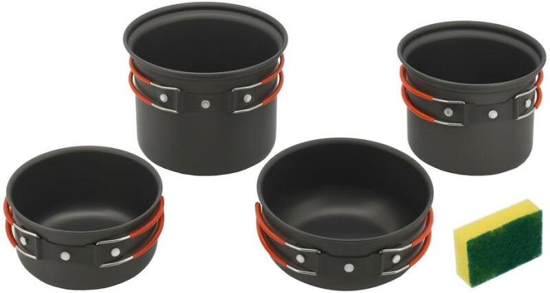 Szeretne kényelmesen főzni finom ételeket a kempingezés alatt a sátorban vagy a lakókocsiban? A Cattara Cook kültéri edénykészlet jól fog szolgálni és megfelel az elvárásainak. Ez a 4darabos készlet, eloxált alumíniumból, 2 fazekat és 2 lábast tartalmaz. A különböző méreteknek köszönhetően az edényeket egymásba lehet rakni. A kényelmes kezelés érdekében a fazekak
