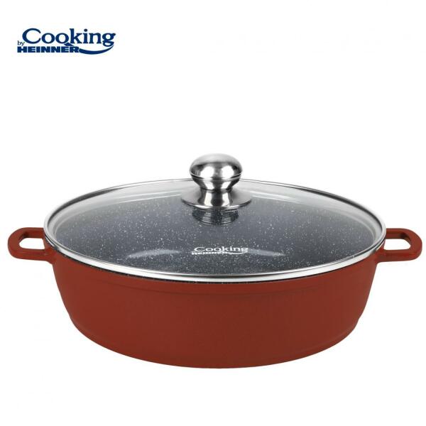 Cooking by Heinner Calabria lábas, fedővel, alumínium, 40 x 9,8 cm, 11 L Anyaga: öntött alumínium. Hőálló üvegburkolat rozsdamentes gombbal;Belső: szürke PFLUON kerámia bevonat márványos megjelenéssel;Külső: magas hőmérsékletnek ellenálló kerámia bevonat. ALUMÍNIUM LÁBASBURKOLAT: ÜVEG + ROZSDAMENTES ACÉL. Jellemzők:ALUMÍNIUM LÁBAS + FEDŐ, CALABRIA öntött alumíniu