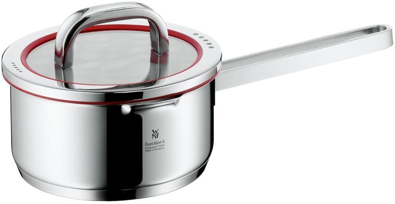 WMF Function 4 tejforraló fedővel 16cm 1,40l A WMF tejforralója kiválóan alkalmas a kis adag ételek, a tej és a levesek gyors felmelegítéséhez. Ezenkívül a krémekhez és pudingokhoz is hasznos. Míg az egyik kezével megfogja a fogantyút - az üreges fogantyú főzés közben nem melegszik fel - a másik kezével a habverőt keveri az edényben. A tejforraló kiöntő peremének seg