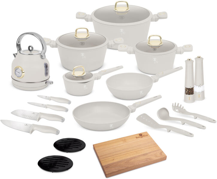 Fedezze fel a konyhai tökéletességet a BerlingerHaus exkluzív konyhai kezdőszettjeivel, amelyek most 5 új, lenyűgöző termékcsalád design-jában érhetők el! Ez a prémium minőségű szett nem csupán funkcionalitásában kiemelkedő, de elegáns megjelenésével is tökéletesen illeszkedik bármely konyhába. A konyhai kezdőszett tartalma: 15 részes edénykészlet: 5 db lábas víz