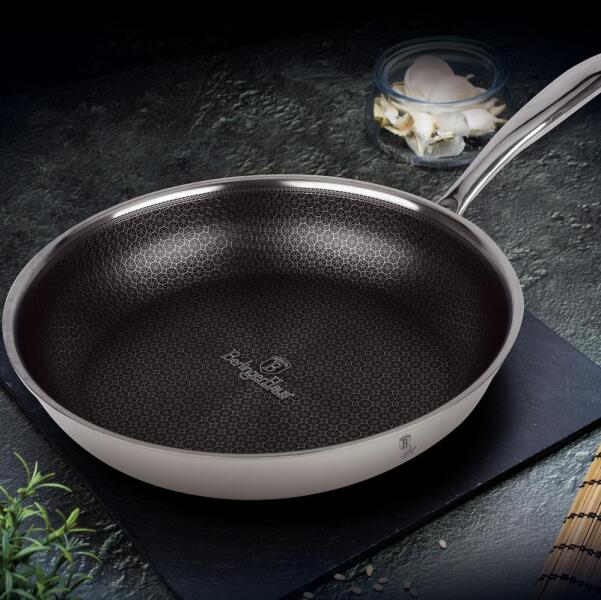 Berlinger Haus tapadásmentes indukciós serpenyő, 30 cm, Eternal - BH-8516 A Berlinger Haus Eternal 30 cm-es serpenyője ideális választás a minőségi és stílusos főzéshez. Az űrtartalma 3,1 liter, így nagyobb adagok elkészítésére is alkalmas. Ez a prémium serpenyő háromrétegű 18/10 rozsdamentes acélból készült, amely hosszú élettartamot és kiváló hőelosztást biztos