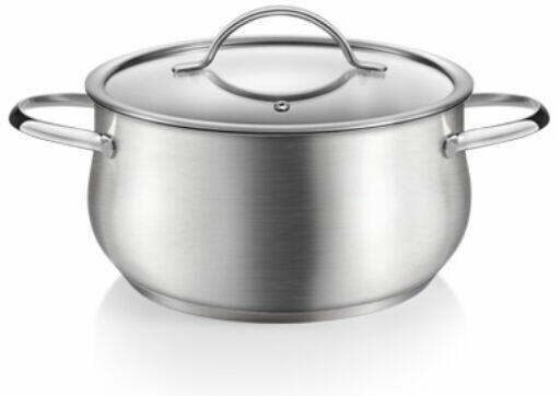 Modern konyhai edények rozsdamentes acél üvegfedővel, kényelmes füllel, háromrétegű szendvicsaljjal és mérőskálával. Első osztályú rozsdamentes acélból készült, minden típusú tűzhelyre alkalmas, beleértve az indukciós főzőlapot is. Mosogatógépbe alkalmas. 5 év garancia.