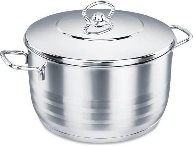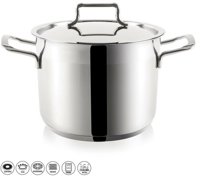 Rozsdamentes acél fazék ANETT 18,2 l fedéllel Rozsdamentes acél edény - kapacitása 18,2 l, átmérője 30 cm, magassága 28 cm. A rozsdamentes acélból készült edények, a felhasznált technológiának és minőségi anyagoknak köszönhetően, minden modern háztartásban alkalmazhatók, és ideálisak az egészséges táplálkozáshoz, étkezési, gazdasági és esztétikai ételek kés