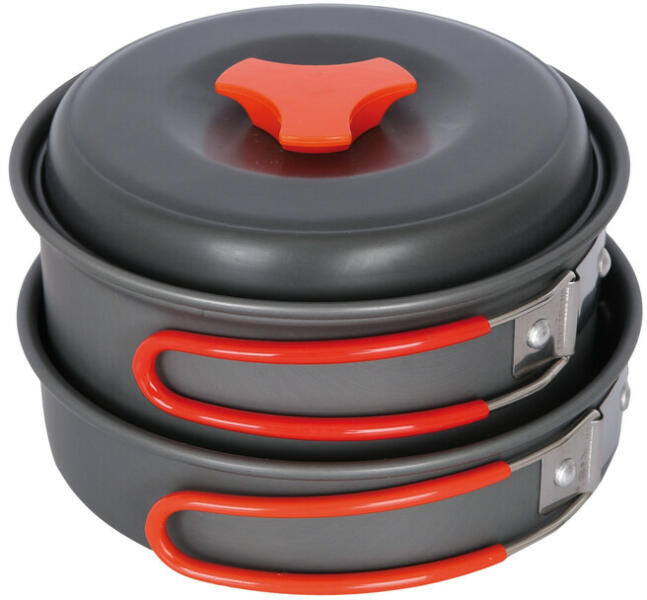 Univerzális rozsdamentes acél főzőedénykészlet. Hőálló, tárolás és kopásálló. Ideális természetjárásra, könnyű súly és tárolás. Anyag: rozsdamentes acél, polipropilén, mosószivacs, bambusz. Súly: 400 g. Edényméret: edények: 140 x 72 mm, serpenyők: 150 x 40 mm.