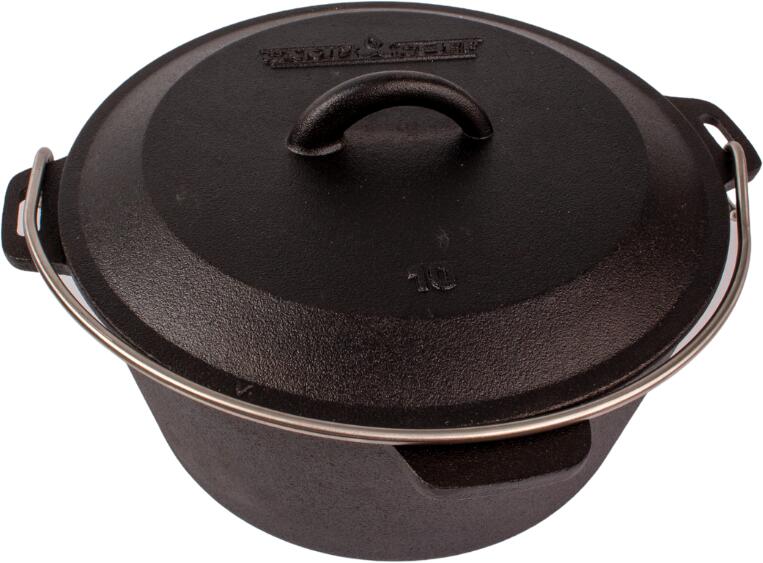 Láb nélküli "True Seasoned Finish" előkezelt öntöttvas edény fedővel. Tippek az öntöttvas edények védelmében: Tisztítás: Használat után hagyja kihűlni az öntöttvasat, majd tisztítsa meg tiszta vízzel, mosogatószer nélkül, szükség esetén egy egyszerű mosogatókefével. Ez megőrzi az értékes patinát. A makacs ételmaradékokat eltávolíthatja a Petromax kaparóval v