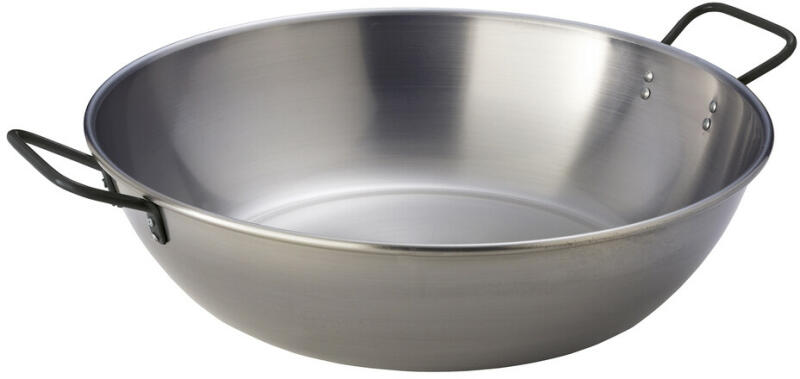 Kiváló minőségű wok mindenféle wok ételhez és leveshez. Nyílt tűzre is alkalmas. Száraz helyen tárolja. AcélCsomagolási méret L 51 B 40 H 13 cmSúly 1600 ghidegen hengerelt acélo 40 cm