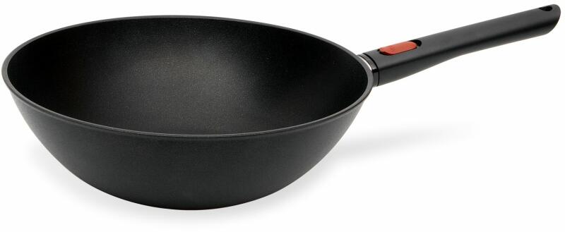 Kiváló minőségű WOK serpenyő a német Woll márkától. Tanács öko ételek - 100%-ban újrahasznosítható alumínium, a fogantyúban akár 40% természetes anyagok. Könnyű, 30 cm átmérőjű serpenyő tapadásmentes felülettel a levehető fogantyú. Alkalmas sütőbe, mosogatógépbe és indukciós sütőbe.