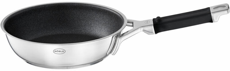 Ideális kíméletes sütéshez kevés zsiradékkal 18/10 rozsdamentes acél A prémium tapadásmentes ProResist bevonat beépített szilícium-karbid részecskékkel lehetővé teszi a rozsdamentes acél konyhai eszközök használatát A tokozott szendvics alj alumínium maggal gyors hőfelvételt, hőelosztást és tárolást biztosít Kiöntőperem a biztonságos és cseppmentes kiöntéshez A