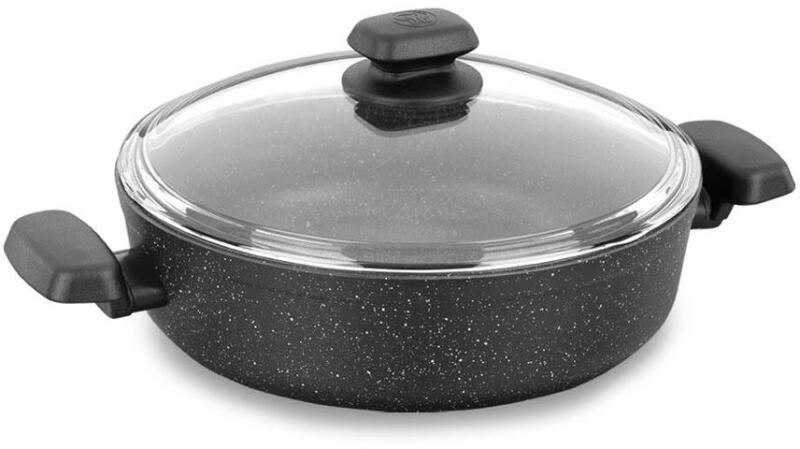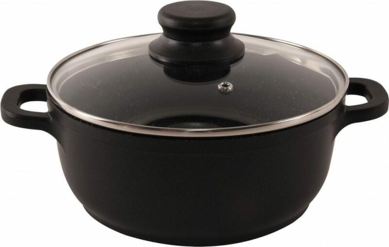 Pot fedéllel kiváló minőségű tapadásmentes felülettel PFLUON GRANIT , megakadályozza az ételek odaégését masszív fogantyúk a könnyű kezelhetőségért Erős szendvics alja energiát takarít meg Alkalmas minden típusú készülékhez, beleértve az indukciós készülékeket is. sütőben is süthető, fedővel 200 °C-ig. anyag: alumínium kiváló tapadásmentes PFLUON GRANIT f