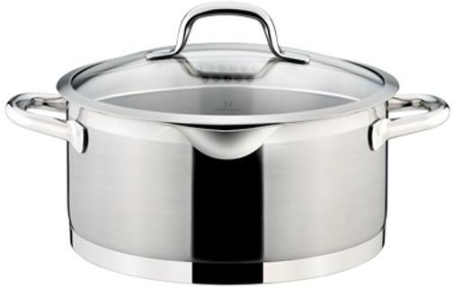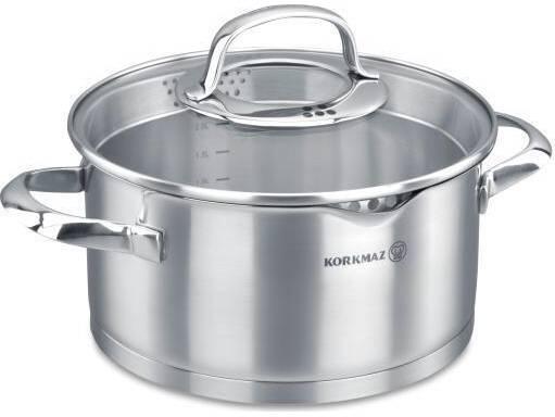 Luxuskivitelezésű konyhai edény üveg, rozsdamentes acél szűrőfedővel, kis- és nagy nyílásokkal a kényelmes szűrés érdekében, masszív rozsdamentes acél fülekkel, extra erős szendvics aljjal és mérőskálával. Első osztályú rozsdamentes acélból 18/10 készült, az összes típusú tűzhelyen használható - gáz, villany, üvegkerámia és indukciós. A rozsdamentes acél