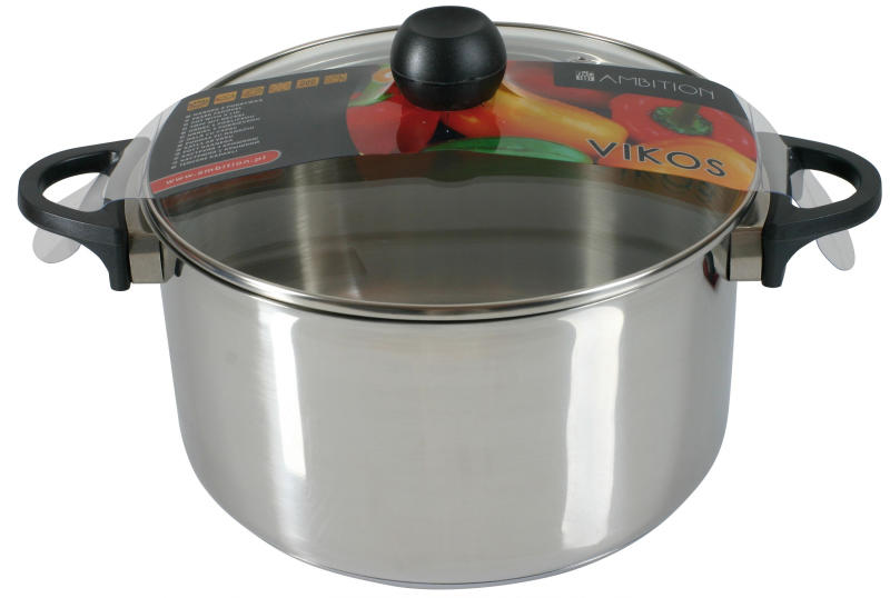 Az Ambition Vikos fazék rozsdamentes acélból készült, így tartósabb, belső mérő jelzése pedig segít a mennyiségben, üveg fedele hőbírású.