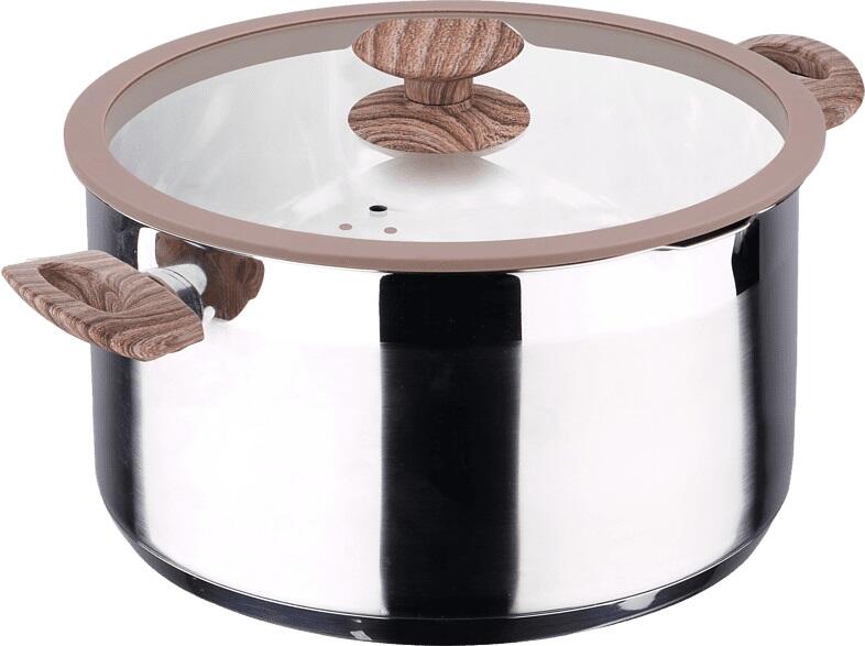 Rendkívül ellenálló 18/10-es rozsdamentes acélból készült. Háromszoros diffúzor alsó rész. Hőálló üveg fedelek. Gőzkivezető szelep az összes fedélen. Minden típusú tűzhelyhez használható: indukciós, elektromos, üveg kerámia és gáztűzhelyhez. Mosogatógépben mosható.