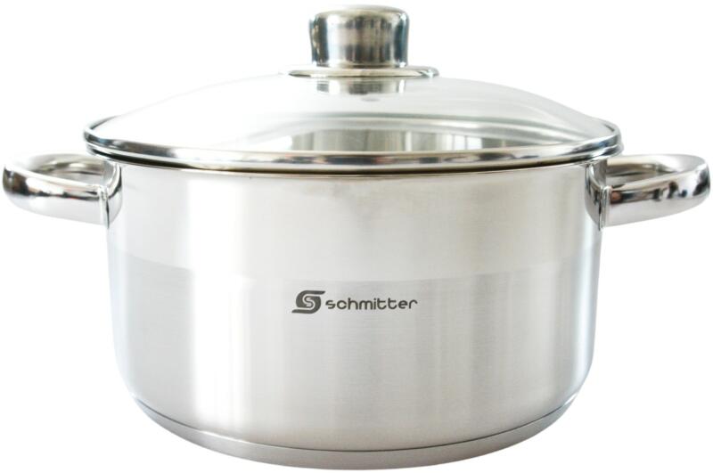 Schmitter Rozsdamentes acél fazék, 32x22 cm, 17.5L Az edény alja 5 rétegből áll ami segíti a hő egyenletes eloszlását: - egy acél réteg - két alumínium réteg ami bevonja az acél réteget - két inox réteg kívül-belül Magas minőségű kivitelezés Larex minőségi tanúsítvány Színes dobozos csomagolás. Vastagság 4.2 mm.
