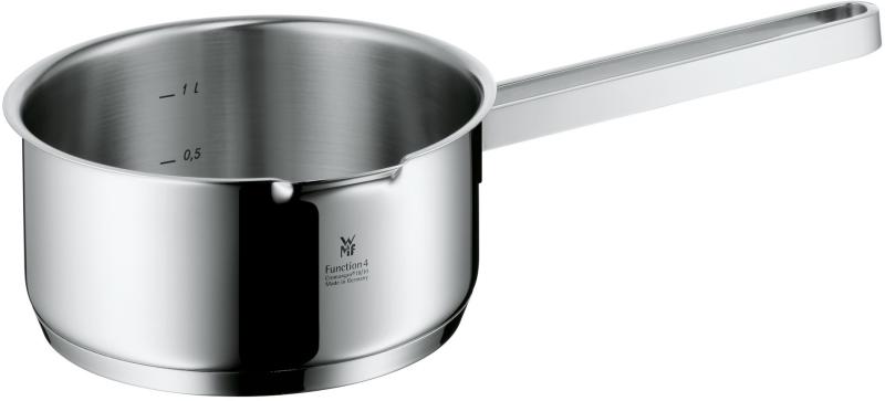 WMF Function 4 tejforraló 16cm 1,4l A WMF tejforralója kiválóan alkalmas a kis adag ételek, a tej és a levesek gyors felmelegítéséhez. Ezenkívül a krémekhez és pudingokhoz is hasznos. Míg az egyik kezével megfogja a fogantyút - az üreges fogantyú főzés közben nem melegszik fel - a másik kezével a habverőt keveri az edényben. A tejforraló kiöntő peremének segítségéve