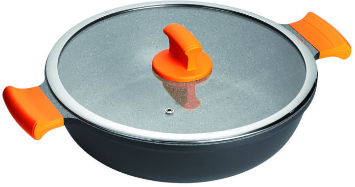 Inoxibar rozsdamentes szelet sütő, tapadásmentes bevonattal 32 cm, 5 l fedővel Absolut Orange Range. Tapadásmentes, mérete: 32 cm. Réteg: 6mm vastag, 4 réteggel ellátott. Rétegek az aljától sorolva: rozsdamentes alj, öntött alumínium réteg, középső réteg és tapadásmentes bevonat. Absolute Orange Range, narancssárga fogantyúval. A tapadásmentes felületet a GREBLON német t