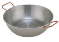 Paella füles serpenyő polírozott 22 cm (13409) Anyaga:polírozott acél Mérete: 22,5 cm átmérőjű felül peremmel, 21,5 cm átmérőjű felül perem nélkül, 15 cm átmérőjű alul, 6 cm magas, 33 cm széles fülekkel együtt, 6,7 cm magas a fülénél Súlya: 350 g Használható: gáz-, elektromos tűzhelyen Tisztítása: Semleges folyékony mosogatószerrel mossa el! Kerülje a karcosod