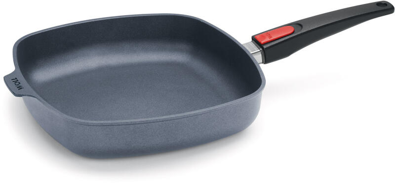 A levehető nyelű Diamond Lite titánserpenyők a német WOLL márka innovatív termékei. Speciális, tapadásgátló felület-kialakításuknak köszönhetően ideális segítséget jelentenek az egészséges és energiatakarékos főzéshez, valamint kiválóak a zsírmentes vagy minimális mennyiségű zsiradékon való sütéshez. A Diamond Lite sorozat gyémánt edzett acéledényei igazi k
