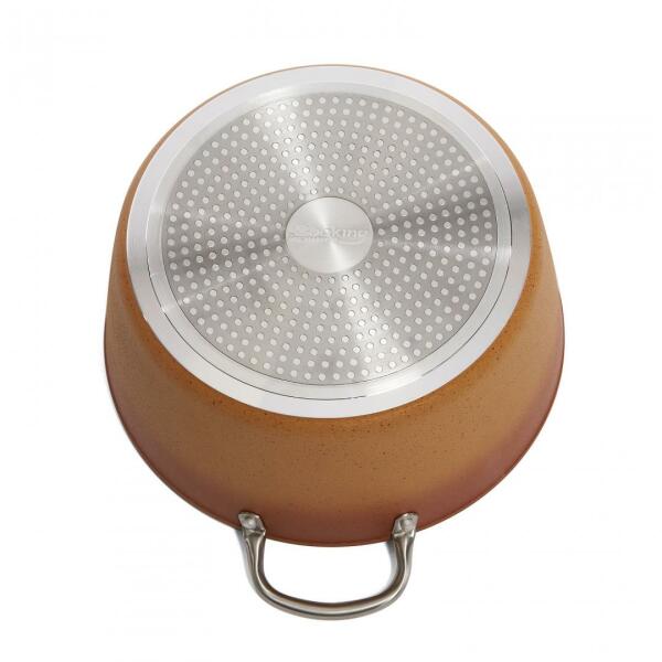 A Lazise termékcsalád 24 cm-es, sekély, tapadásmentes serpenyője olyan többfunkciós főzőedény, amelyet a szakács és az otthoni amatőrök egyaránt értékelni fognak. A 4 rétegű tapadásmentes bevonatot gyémántrészecskékkel dúsították, így rendkívül ellenálló. A Lazise serpenyő alja többrétegű, kovácsolt, élelmiszer-biztos alumíniumból készült, amelyet kiváló