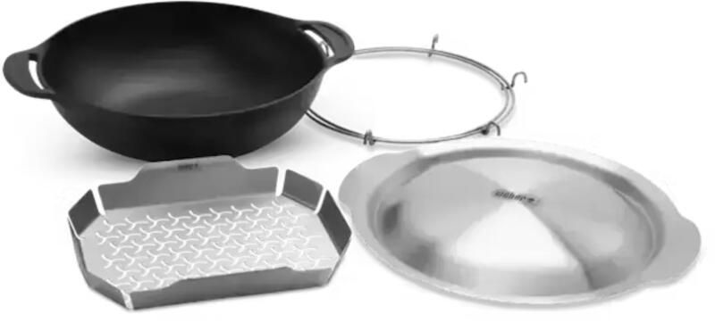 JELLEMZŐK H asználja wokként vagy párolóként WEBER CRAFTED keretet és sütőrácsot igényel A porcelánnal zománcozott öntöttvas megtartja a hőt a gyors és egyenletes főzés érdekében 5,7 literes kapacitás *Ellenőrizze, hogy grillje kompatibilis-e a WEBER CRAFTED kiegészítőkkel