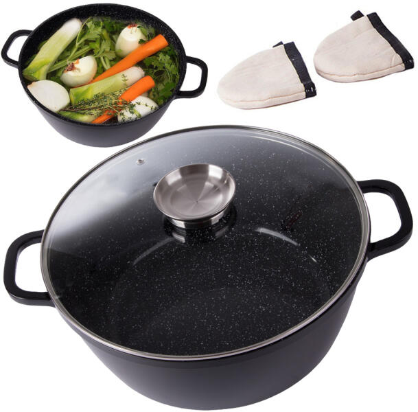 Kiválóan alkalmas professzionális konyhákban és a háztartásban is. Első osztályú rozsdamentes acélból készült, extra erős szendvics aljjal és masszív széles fogantyúkkal. Minden típusú tűzhelyre alkalmas - gáz, elektromos, üvegkerámia és indukciós, mosogatógépben is mosható.