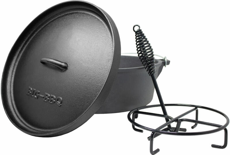 Mindig forró a vas a tűzben: a Klarstein Galloway barbecue öntöttvas edény használható főzésre, párolásra vagy sütésre égő briketten, tábortűzön vagy serpenyőként grillen. Az univerzális rusztikus edény előre hőkezelt, így azonnal készen áll a használatra. Az öntöttvas kialakítás gondoskodik az egyenletes hőelosztásról. A magas peremmel ellátott praktikus fedő