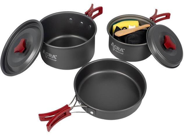 Sátor alatt vagy kempingben szeretne időt tölteni? Könnyítse meg az ételkészítést, és szerezze be az ultrakönnyű és kompakt Acra C21 -es edénykészletet . A praktikus összecsukható fogantyúknak köszönhetően helyet takaríthat meg hátizsákjában. Használja a készletet ebéd vagy vacsora elkészítéséhez akár 3 fő részére. Túrázásra, kempingezésre, piknikezésre alk