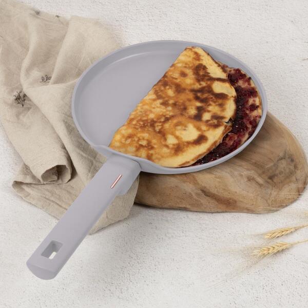 Berlinger Haus tapadásmentes palacsintasütő 25 cm, Taupe - BH-8085 A Berlinger Haus Taupe palacsintasütő (BH-8085) a gondtalan reggelik és desszertek kulcsa. A kovácsolt alumínium szerkezet és a 3x tartósabb titánPro tapadásmentes bevonat lehetővé teszi, hogy minimális olajjal is tökéletesen sült, könnyű palacsintákat készítsen. A 25 cm átmérő ideális méret egy személy