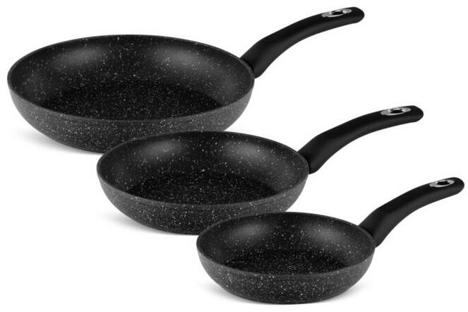 3 darabos, tömör Edenberg EB-4115 szett márvány tapadásmentes bevonattal és turbó indukciós aljjal. Minden tűzhelytípushoz alkalmas, tartós és mosogatógépben mosható. A készlet 3 serpenyőt tartalmaz, átmérőjük: 20 cm, 24 cm, 28 cm. Mosogatógépben mosható.