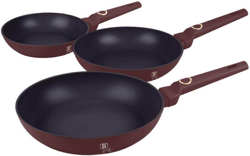 A Leonardo Collection 3 részes serpenyő szett matt bordó színben a konyhád számára tökéletes választás. A kovácsolt alumíniumból készült serpenyők tapadásmentes titánPro bevonattal vannak ellátva, így garantált a hosszú élettartam és az egyenletes hőeloszlás. Főbb tulajdonságok és előnyök Szett tartalma A szett három különböző méretű serpenyőt tartalmaz: Ø2