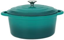 Perfect Home zománcozott öntöttvas lábas 2L, türkiz (16636) Prémium anyag: A zománcozott öntöttvas rendkívüli hőelosztást biztosít, így ételeid mindig tökéletesen sülnek-főnek. Méretek: 20 cm átmérő, 25,5 cm füllel együtt, 9 cm magas (fedővel ~14 cm) – ideális méret minden konyhai feladathoz. Űrtartalom: Praktikus 2 literes kapacitás, ideális egyedi ételkészít