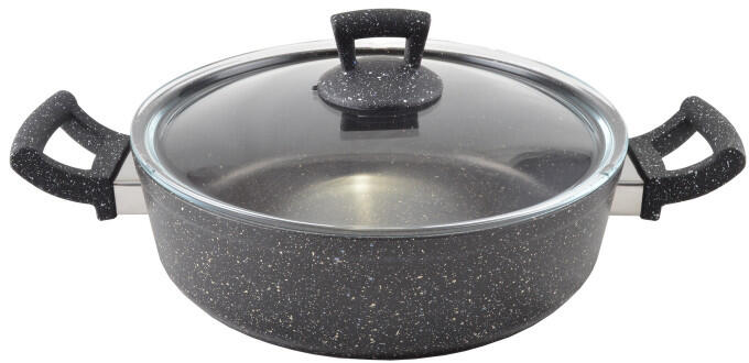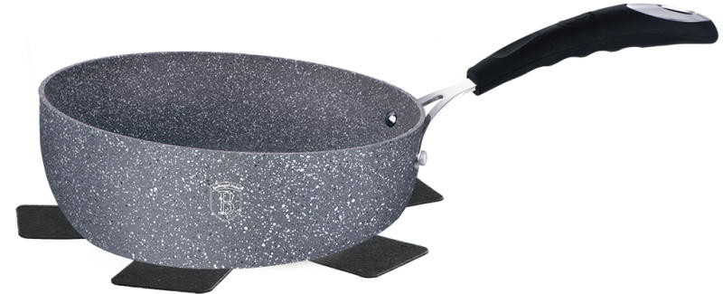 Gyártó: Berlinger Haus Modell: Stone Touch 26 cm (BH/1401) Leírás: A Stone Touch Line Flip serpenyő (26 cm) egy elegáns és praktikus választás a modern konyhák számára. Az alumíniumból készült serpenyő a Stone Touch termékcsalád részeként tartós és egyenletes hőeloszlást biztosít. A serpenyő fogantyúja rozsdamentes acél hőálló szilikonnal van bevonva, amely ergonomi