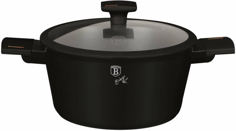 Berlinger Haus MONACO bevonatos LÁBOS üveg fedővel 24cm 4,1l / BH-7087 / Méretek: Átmérő: 24 cm Mélység: 11,8 cm Űrtartalom: 4,1 L A BerlingerHaus serpenyői és edényei szinte kivétel nélkül 3 rétegű kovácsolt alumíniumból készülnek, amely lehetővé teszi a magasfokú hővezetést. Emellett 3 rétegű tapadásmentes márványbevonattal rendelkeznek, aminek köszönhetően az