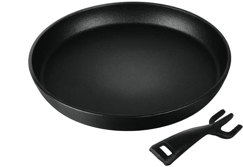 A Black Silver Collection egy igazi kincs a modern konyhák számára. A sorozatban kapható öntöttvas kerek grill sütőlap levehető nyéllel (21 cm) a praktikum és stílus egysége. Főbb tulajdonságok és előnyök Anyag Az öntöttvas anyag hosszú élettartamot és egyenletes hőeloszlást biztosít a sütés során. Méret A sütőlap mérete 21*2,7 cm, amely ideális a kisebb adagok el