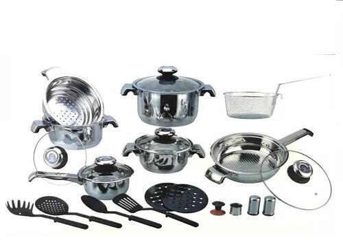 Ez a Royal 22 részes edénykészlet kiváló minőségű rozsdamentes acélból készült, amely garantálja a tartósságot és hosszú élettartamot. Az összes darab alumínium magos hőelosztó aljjal rendelkezik, amely biztosítja a hő egyenletes és gyors eloszlását. Nem tartalmaz vasat, mivel az csak növelné a súlyt, de akadályozná a hő megfelelő terjedését. A hőálló edzett