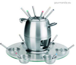 6 személyes fondue készlet rozsdamentes acélból Tartalma: 6 kanál 6 villa 6 tálka 1 fondue edény égőfej üvegtálca Anyaga: 18/10 rozsdamentes acél Származási hely: EU Kérjük vegye figyelembe, hogy előfordulhat hosszabb (2-3 hét) szállítási idő