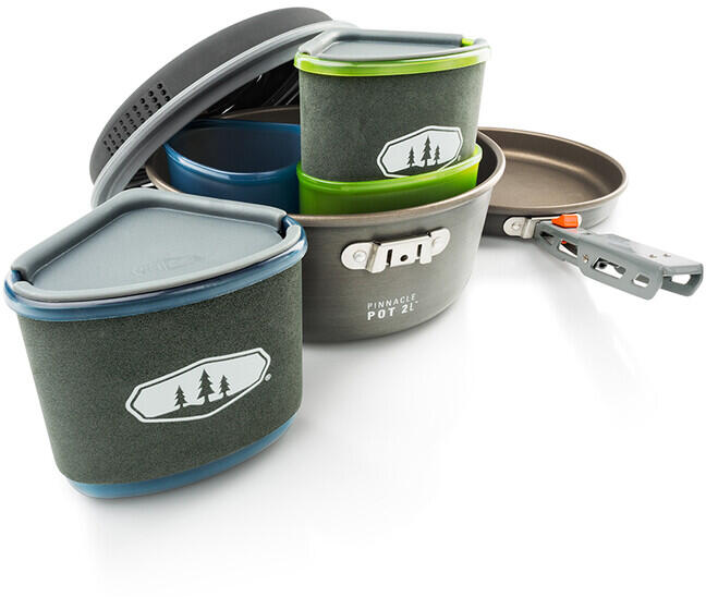 Kompakt szett lábas, csészék, tálak, edények, mosogató 2 utazó számára Pinnacle kivitelben. A főzőedény és az evőeszközkészlet is elhelyezhető a szettben (nem tartozék). A BPA FREE műanyagból készült fedél lehetővé teszi a gőz zökkenőmentes távozását az edényből, és szűrőként is szolgál,