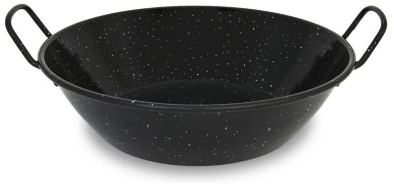 Anyaga: zománcozott vas Mérete: 36,7 cm átmérőjű felül peremmel, 35,5 cm átmérőjű felül perem nélkül, 26,5 cm átmérőjű alul, 10,8 cm magas, 36,5 cm széles a fülekkel, 16 cm magas a fülnél Súlya : 1,3 kg Használható : gá z-, kerámialapos -, elektromos tűzhelyen Tisztítása : Seml eges folyékony mosogatószerrel mossa el! Kerülje a karcosodást okozó szerek és eszkö