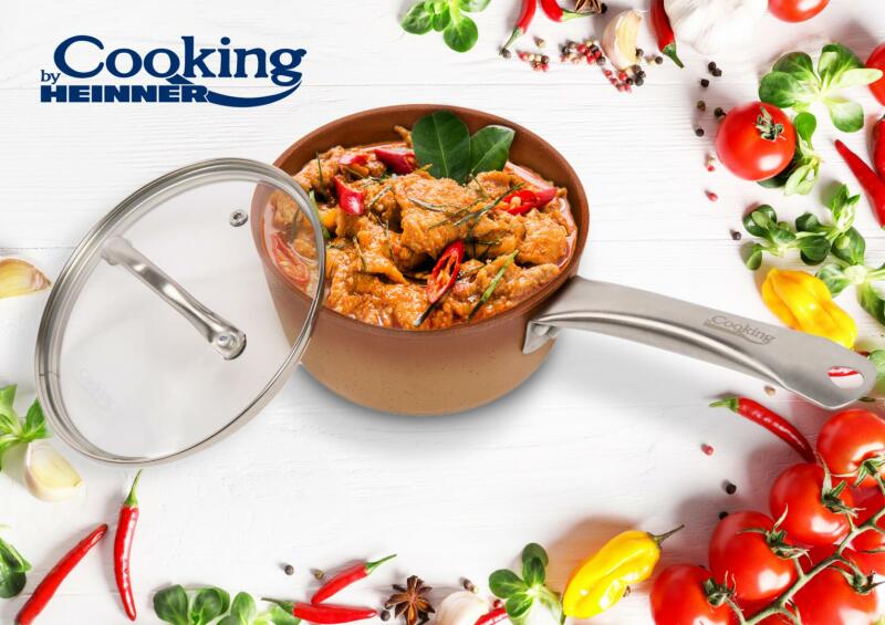 Heinner Ceramica Do Brazil Főzőedény fedővel, alumínium, 16x7,5 cm, 1,2 liter Anyaga: kovácsolt alumínium + rozsdamentes acél nyél és fül+ hőálló üveg fedő Belseje: Tapadásmentes márványozott homokfúvott Külső: magas hőmérsékletnek ellenálló márvány homokfúvott festék Indukciós alap Csomagolás: színes doboz A termékek kovácsolt alumíniumból készülnek, tapad