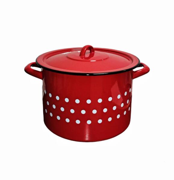 Bonyhádi pöttyös zománcozott fazék + fedő 22 cm