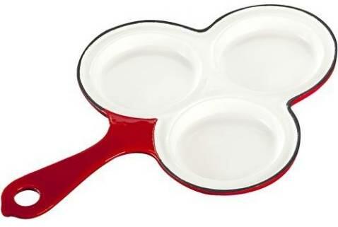 Litinový smaltovaný lívanečník české výroby Gourmetina. Barva červená.