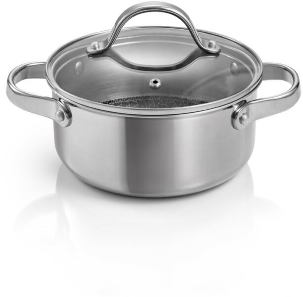 Fényűző edények forradalmian új tapadásmentes bevonattal. Mi teszi különlegessé a SteelCRAFT edényeket? Egyesítik a klasszikus rozsdamentes acél edények előnyeit a tapadásmentes bevonat előnyeivel. Az alumínium maggal ellátott szendvicsacél konstrukciónak köszönhetően a hő gyorsan és egyenletesen oszlik el az edények minden részén. Az egyedülálló tapadásmentes felü