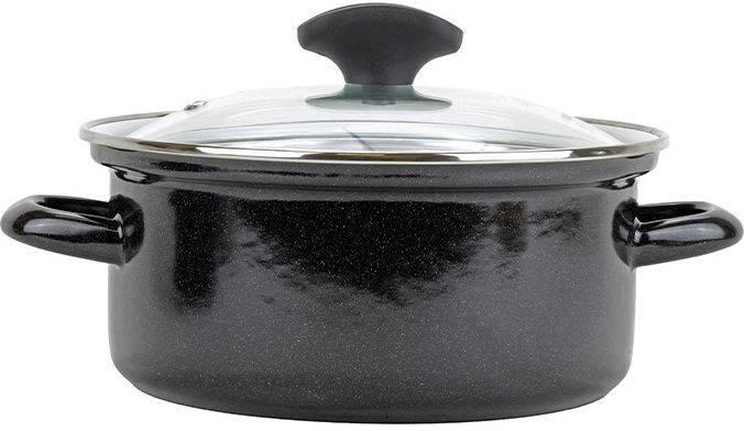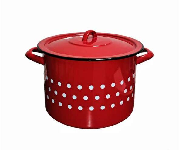 Bonyhádi pöttyös zománcozott fazék + fedő 18 cm