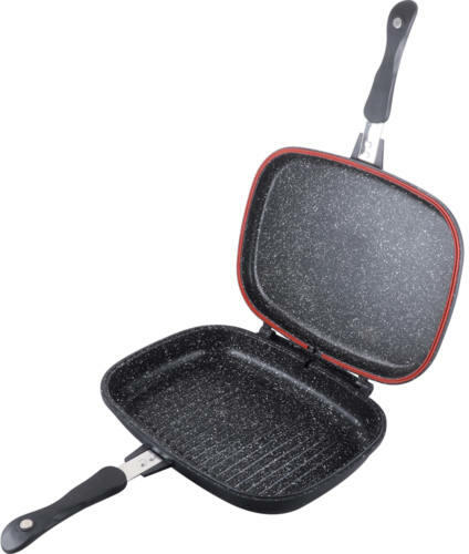 A Berlinger Haus Granit Diamond Line öntött alumíniumból készült serpenyő három réteg márványbevonata és a turbó indukciós talp lehetővé teszi, hogy ételei energiatakarékosan és gyorsabban elkészüljenek. Hagyományos (gáz és elektromos) és indukciós főzőlapon is használható. Egyszerűen, egy modulattal szétszedhető két külön serpenyőre. Az ergonomikus, puha tapin