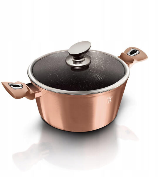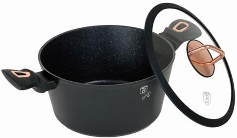 A Berlinger Haus Black RoseCollection kovácsolt alumíniumból készült magas lábas három rétegű márványbevonata és a turbó indukciós talp lehetővé teszi, hogy ételei energiatakarékosan és gyorsabban elkészüljenek. Mindenféle főzőlapon - indukciós lapon is - használható. Szabadalmaztatott kialakítású, ergonomikus, puha tapintású fogók. Elegáns, rosegold fogantyúval